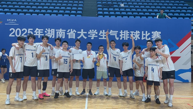 ▲我校男子排球队(高水平组)荣获2025年湖南省大学生气排球比赛冠军合影