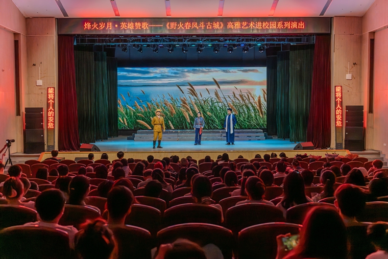5月8日晚,2024-2025年度湖南省高雅艺术进校园——民族歌剧《野火春风斗古城》首场演出在学校雅韵堂圆满举办。校党委委员、宣传统战部部长方小斌,相关职能部门负责人、成人亚洲AV一片内射师生400余人观看演出。
