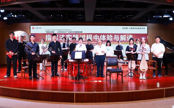 5月18日,我院民乐团应邀参加长沙市文化馆服务宣传周系列活动之“百姓大讲堂一一打开艺术之门”公益艺术讲座。本次讲座由国家一级指挥刘毓麟解读《指挥法实践过程中体验》。我院民乐团、长沙市企事业文联如歌合唱团现场示范演唱演奏,天心区贺龙友谊乐团、天心中阮艺术团、金岭葫芦丝巴乌艺术团等群众文艺团队200余人聆听讲座。