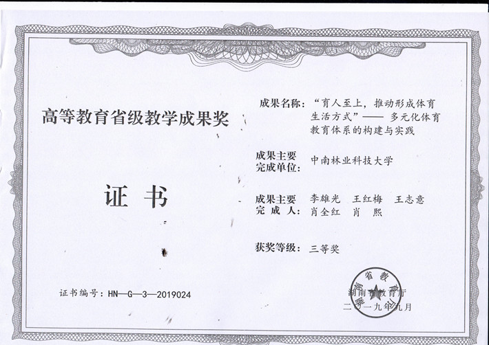 高等教育省级教学成果三等奖——“育人至上,推动形成体育生活方式”——多元化体育教育体系的构建与实践