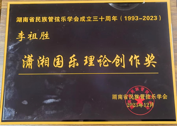 李祖胜教授获潇湘国乐理论创作奖(2023年12月)