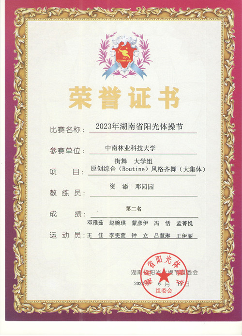 2023年湖南省阳光体操节大学组街舞第二名
