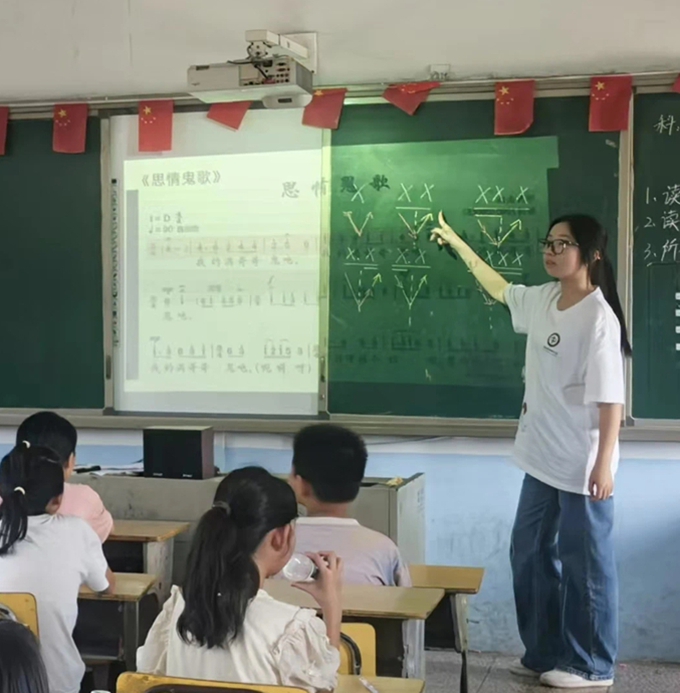音乐是心灵的桥梁,是国家的文化名片。“绿茵乐章”服务团以音乐为媒,为玉茶小学的孩子们打开了一扇通往艺术殿堂的大门。他们通过趣味游戏学习节奏、音高等基础知识,使教室里响起悠扬的歌声与稚嫩的演奏声。让“国家音乐”文化在童心中生根发芽,与大家一同见证 “国家音乐”的美育浸润。